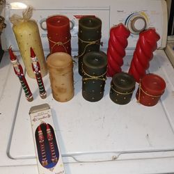 Iron Apple candle holder, three red pillar candles$5Byron, CA