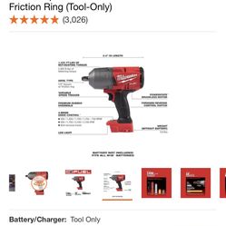 MILWAUKEE M18 FUEL WRENCH IMPACT 1/2 INCHES HIGH TORQIE WITH FRICTION RING AND BATTERY XC8.0 AND CHARGER BRAND NEW COMBO$420Vallejo, CA