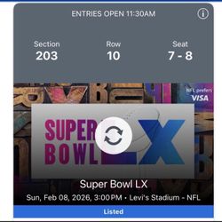 Super Bowl LX Tickets$1,500Santa Clara, CA