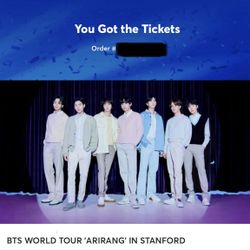 BTS Stanford 5/19 Tickets$500Palo Alto, CA