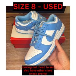 size 8 used - University Blue Dunk Low Nike DV0833-113$100San Jose, CA