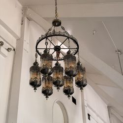 💡Vintage Mid Century Iridescent Stained Glass 5 Light Pendant Chandelier💡$225Redwood City, CA