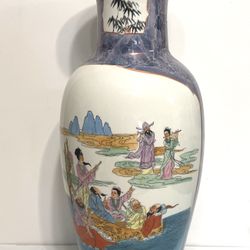 Antique Famille Rose Large 22” Vase Ladies Playing Music In The Water Reverse Side Has People On A Boat Who Are Watching Other People Play Music In Ex$500Palo Alto, CA