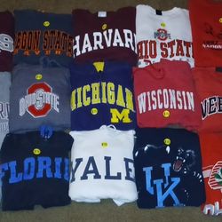 15 Piece College Crew Neck Sweater & Full Zip Hoodie Bundle. Modern and Vintage (all different sizes). $225Stockton, CA