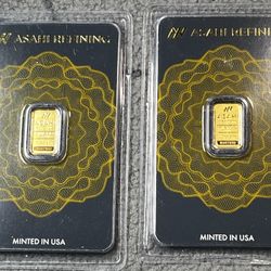 Lot Of 2 = 1 Gram .999 Fine Gold Bar From Asahi In Assay$370Hayward, CA