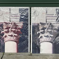 Vintage Architectural Surreal Art Prints Pair Red & Blue Column Eagle Poster 1980s$100Livermore, CA