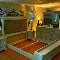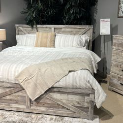 Kanwyn Whitewash King Upholstered Panel Bed, Dresser, Mirror And Chest$10 Down Payment And Financing Available$2,279San Jose, CA