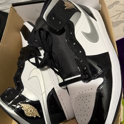 Air Jordan 1 Mid Black White Metallic Silver (black patent leather with white panels and a silver swoosh).$160Hayward, CA