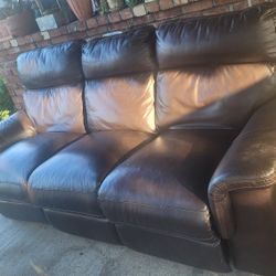 Brown Leather Couch 3 Seater One recliner.$250Redwood City, CA