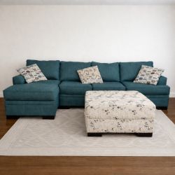 Living Spaces Blue Green Sectional Couch Sofa and Ottoman$545San Jose, CA