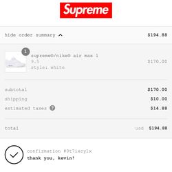 Supreme X Nike Air Max 1$260Milpitas, CA