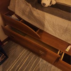 Wooden Twin Size Bed With Drawers And Mattress $25Clayton, CA