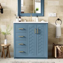 New Assembled, 30" Wall Mounted Bathroom Vanity with Ceramic Top and Sink, With Storage, Faucet Combo Set$150Anaheim, CA