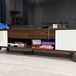 TV Stand for 75''TV,Mid Century Modern TV Console for Living Room, Entertainment Center Television Stand with Round Corner Design, Media Console for B$200Rosemead, CA