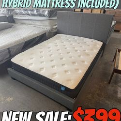 Queen Size Grey Fabric Bed Frame With 8inch Memory Foam Mattress $199Arcadia, CA