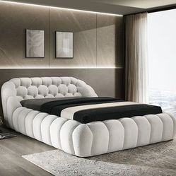WHITE CHENILLE FABRICX QUEEN SIZE PLATFORM STYLE BED FRAME CAMA$1,199Santa Ana, CA