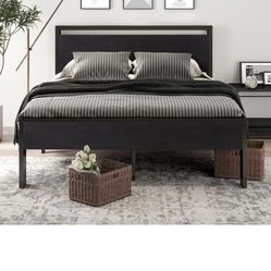 Queen Size Metal Platform Bed Frame with Wooden Headboard and Footboard, Mattress Foundation, No Box Spring Needed,$90Santa Ana, CA