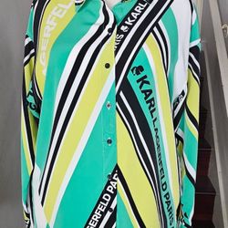Karl Lagerfeld Paris Women's Striped Logo Button Up Shirt Large$60Irvine, CA