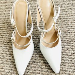 Pointed Wedge Mule White Double Strap High Heel Women’s Size 7.5 $50Alhambra, CA