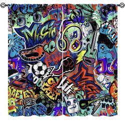 Graffiti Blackout Curtain Hip Hop Style Colorful Abstract City Wall Graffiti Art Print for Boys Bedroom Living Room Bathroom Decor $25Ontario, CA