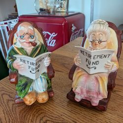Vintage Mid Century 1950s Lefton Old Man And Woman Retirement Fund Piggy Banks$40Orange, CA