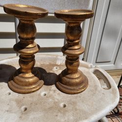 Set of 2 Distressed Pillar Candle Holders Candlestick 8â and 10â Rustic Farmhouse Style$10Pomona, CA