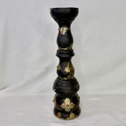 Brass Black Wood Turned Pillar Candle Holder Candlestick Floral 13" Rustic$10Brea, CA