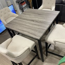 5 Piece Round Dining Table and Chair Set Grey Wood Ashley Kitchen Open Shelf Storage BIG Solid SALE Modern Contemporary Fabric Cushion Clearance 5PC$379San Bernardino, CA
