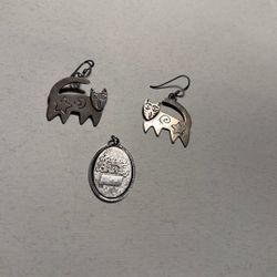Silver 925 Cat earrings (matched pair), and Sterling Charm with "HAPPY BIRTHDAY" $180Fullerton, CA
