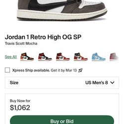Jordan 1 Retro Travis Scott Mocha$1,000Anaheim, CA