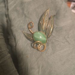 Vintage Gold Tone Filigree Brooch W Green Gemstone$30Chino, CA