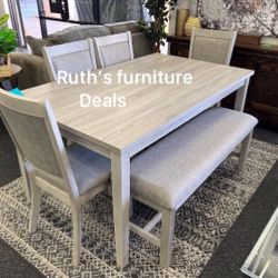DINING ROOM SET TABLE, CHAIRS AND BENCH, GREY - [NEW]$479Santa Fe Springs, CA