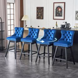 26" Swivel Counter Height Bar Stools Set of 4, Blue Velvet Kitchen Stools with Back$150Anaheim, CA