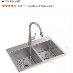 NEW Kohler 33” Stainless Steel Double Bowl Kitchen Sink w/ Faucet – $270$200Fontana, CA