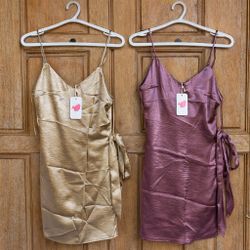 Latiste Gold Or Purple Satin Mini Dress w Slip Spaghetti Strap Tie Bodycon M$25City Of Industry, CA