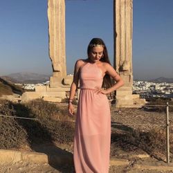 Light pink flowy maxi dress with pleated top and halter neck in Ancient Greek / Roman style, size XS to S A bit of discoloration of the rope as shown$25Arcadia, CA