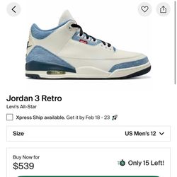 Levi’s Jordan 3 “All-Star” Size 12$500East Los Angeles, CA