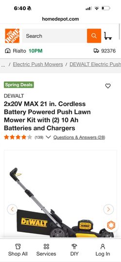 DEWALT 2x20V MAX 21in Cordless Lawn Mower Kit$250Rialto, CA