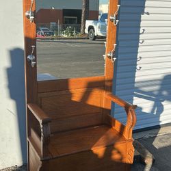 Hat Rack Bench With Mirror Solid Oak 33“ X 17“ X 84“ Bench Seat Is 18 Inches High$150Brea, CA