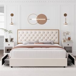 King size Upholstered Bed Frame with 4 Storage Drawers and Handmade Button Tufted Headboard, Modern Velvet King Size Platform Storage Bed with Solid W$185Rancho Cucamonga, CA