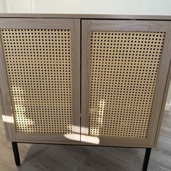 New In Box 31.5x15x33 Inch Tall Entryway Rattan Buffet Sideboard Cabinet Cupboard Shelf Teak Microwave Stand Shoe Rack Storage $55Los Angeles, CA