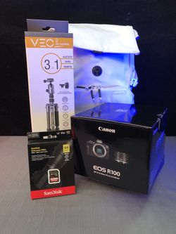 Canon R100 with 18-45mm, Padded Camera Bag SD Card and Tripod (New Bundle)$789San Diego, CA