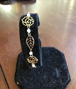 Gold tone Roses and Leafs with faux Pearls Bracelet. 7”.$10Vista, CA