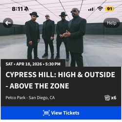 2 Tickets Cypress hill & Bone thugs n harmony$70Chula Vista, CA