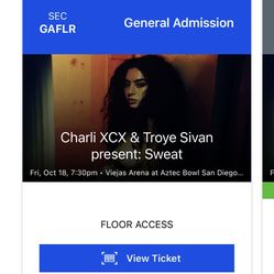 Sweat Charli XCX and Troye Sivan Ticket TODAY$475San Diego, CA
