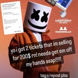 Marshmello MLR front feild ticket’s $200San Diego, CA