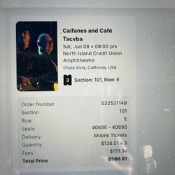 Cafe Tacvba And Calfanes Tickets June 8 El Cajon$160Escondido, CA