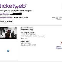 Sullivan King Tickets $100Chula Vista, CA