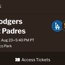 Dodgers @ Padres Tickets | August 23 | 2 Tickets$150San Diego, CA