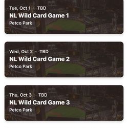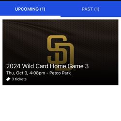 Postseason Padres Tickets Wildcard Round Nlds Nlcs Games 1 2 3 Wild Card Up To 4 Tickets PRICE LOWERED!!$150San Diego, CA